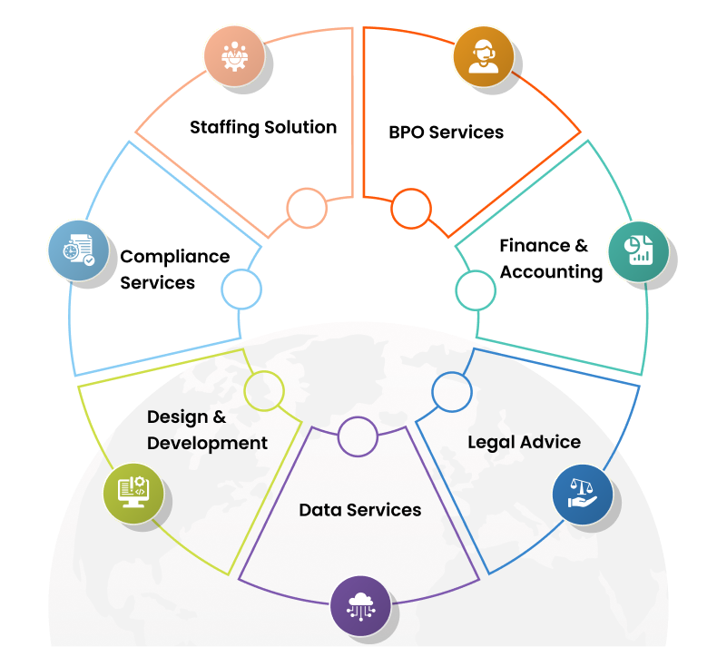 We provide a comprehensive range of Business Support Services, including Staffing Solutions, BPO Services, Finance & Accounting, and Legal Advisory, helping organizations improve efficiency and focus on core business operations.